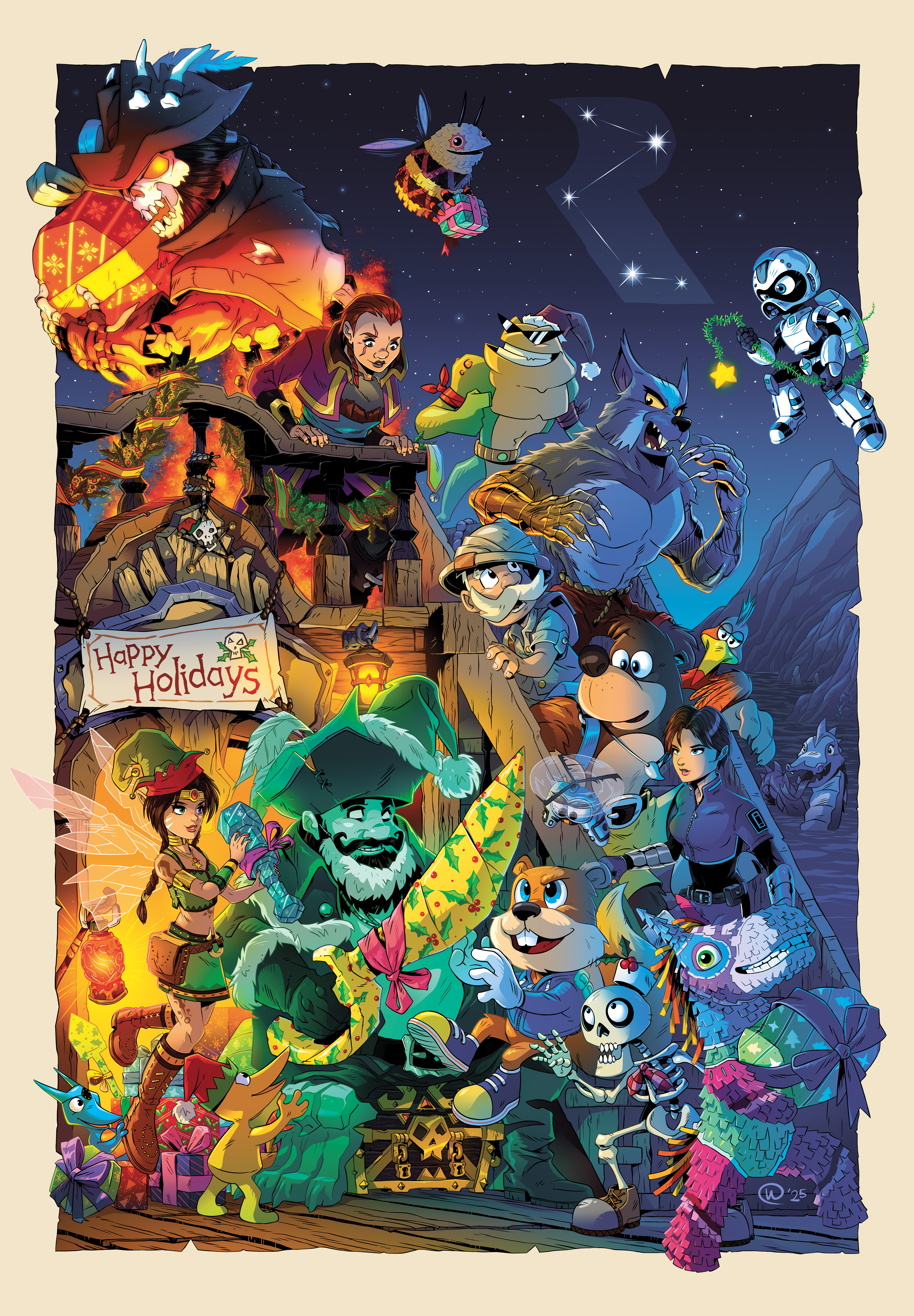 Company Christmas card design featuring characters from the UK games developer.